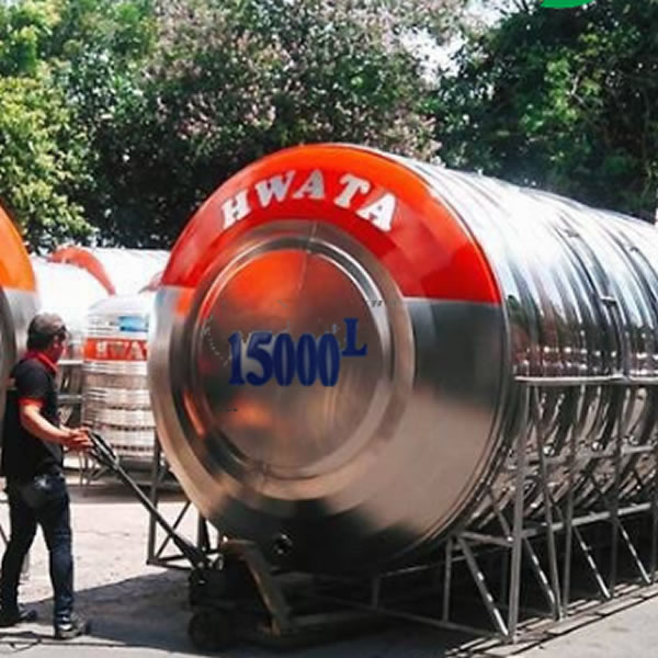 Bồn nước inox 15m3 ngang Hwata thùng, tẹc, bể 15000L 15000 15.000 lít nằm giá rẻ, miễn phí vận chuyển trên Toàn Quốc