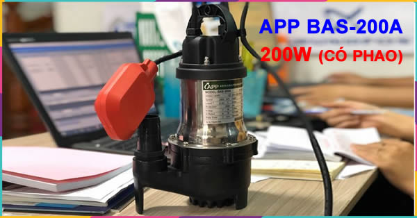 Máy bồm nước APP BAS-200A (200W) dòng thải thả chìm (tỏm) BAS 200A BAS200A có phao