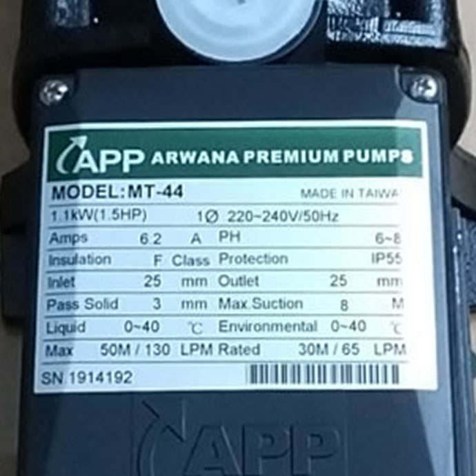 Model APP MT, MÁY BƠM NƯỚC APP