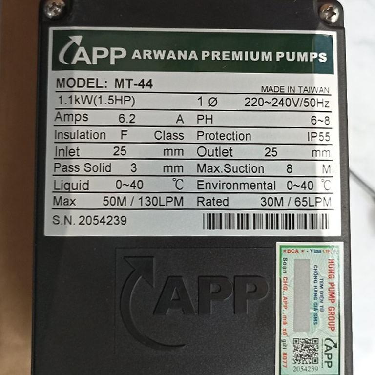– Mỗi sản phẩm máy bơm APP MT-44 1100w đều có kèm theo phiếu bảo hành.