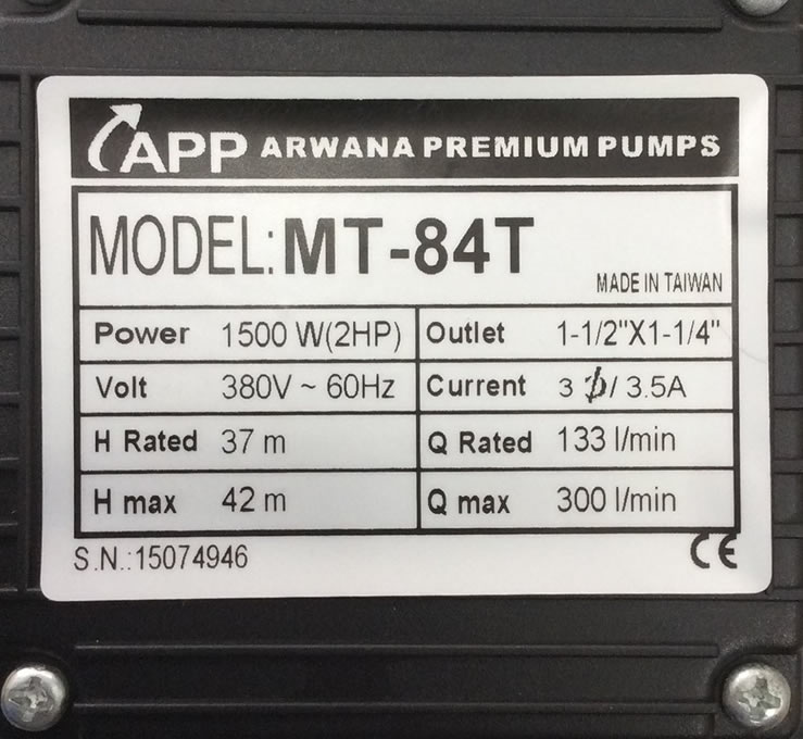 Thông số kỷ thuật máy bơm nước 2hp APP MT-84t