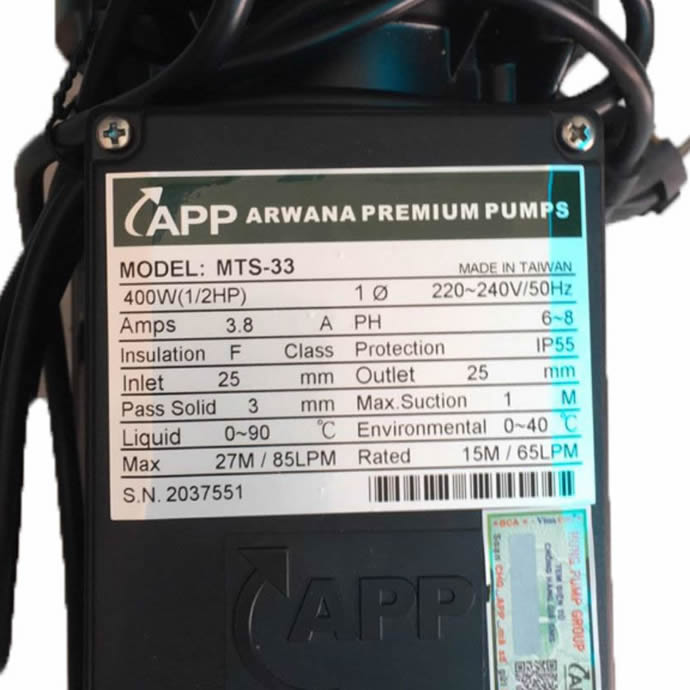 – Mỗi sản phẩm Máy bơm APP MTS-33 400w đều có phiếu bảo hành.