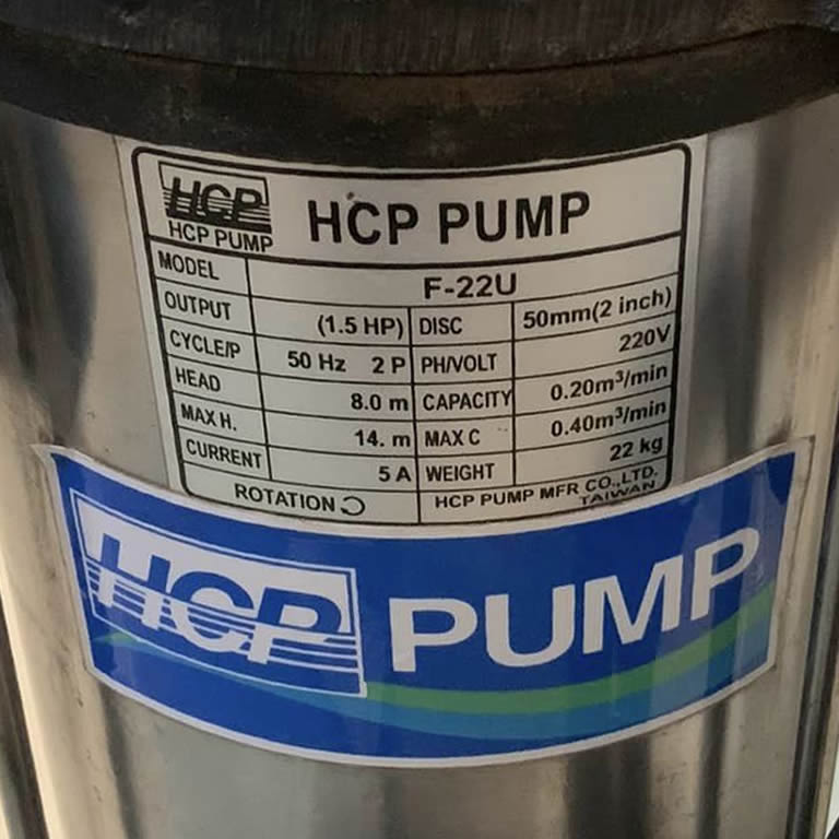 Máy bơm HCP F-22U 2Hp 220v công suất 1.5kW, bơm chìm bền bỉ, xử lý nước thải lẫn cặn hiệu quả. HCP chính hãng, giá cạnh tranh.