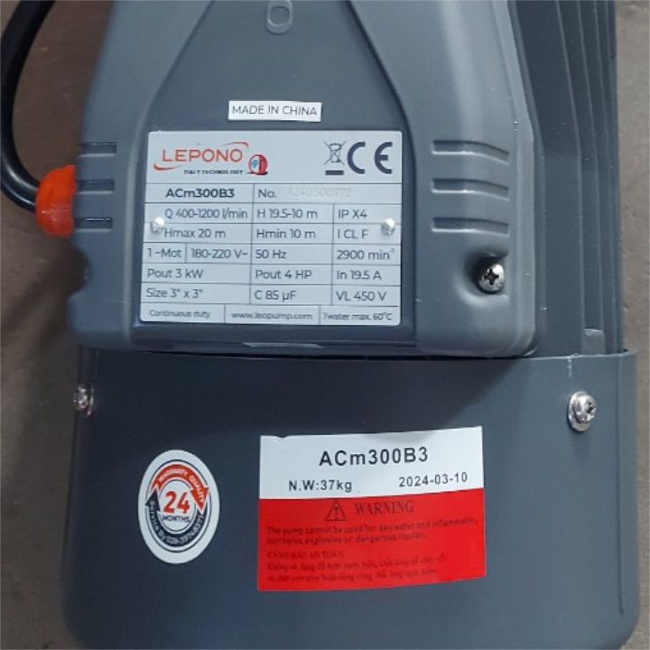 – Máy bơm Lepono ACm300B3, có giá thành hợp lý, là lựa chọn số 1 cho công trình bạn!