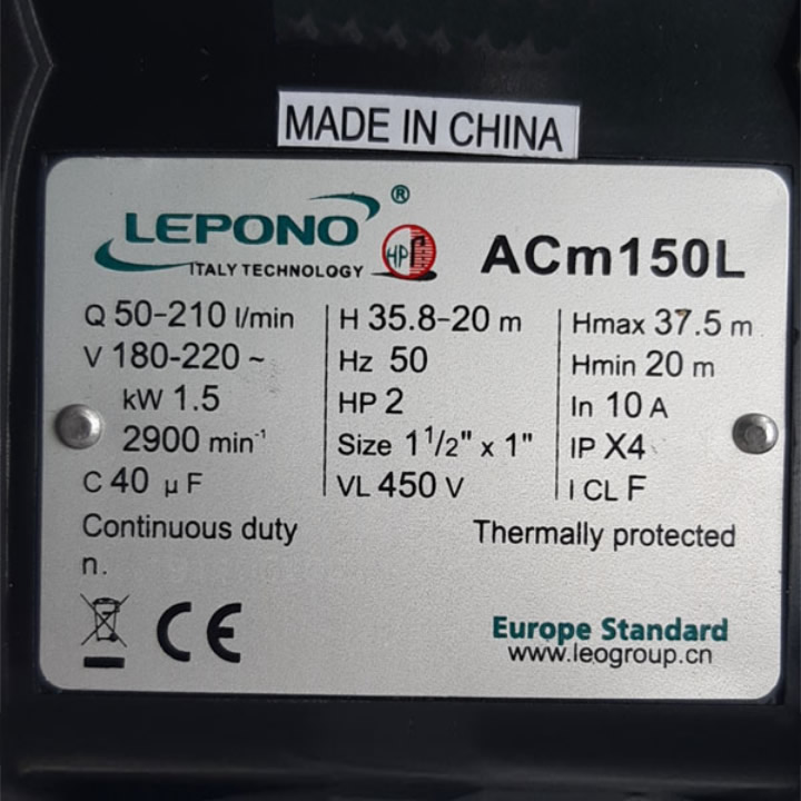 ✅ Máy bơm Lepono ACm150L (2Hp), dòng bơm nước đẩy cao, dùng cho công trình.