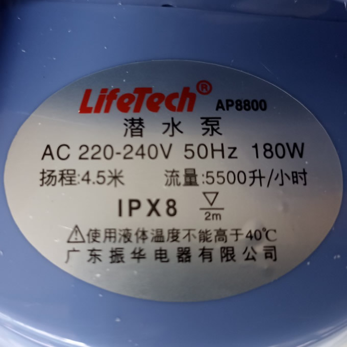Thông số kỷ thuật Máy bơm hồ cá Lifetech AP-8800 180w