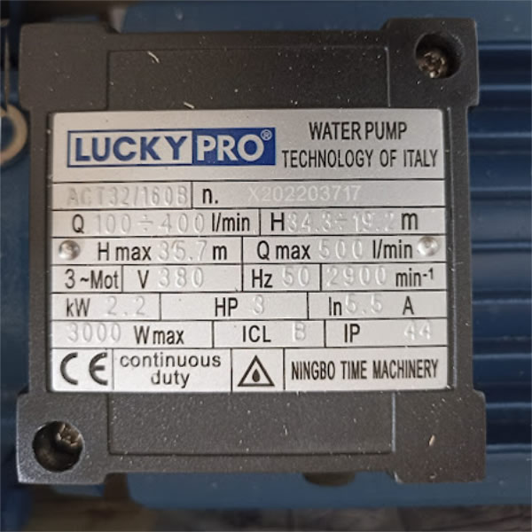 – Máy bơm Lucky Pro ACT 32-160B 3Hp 380v dùng cho phòng cháy chữa cháy