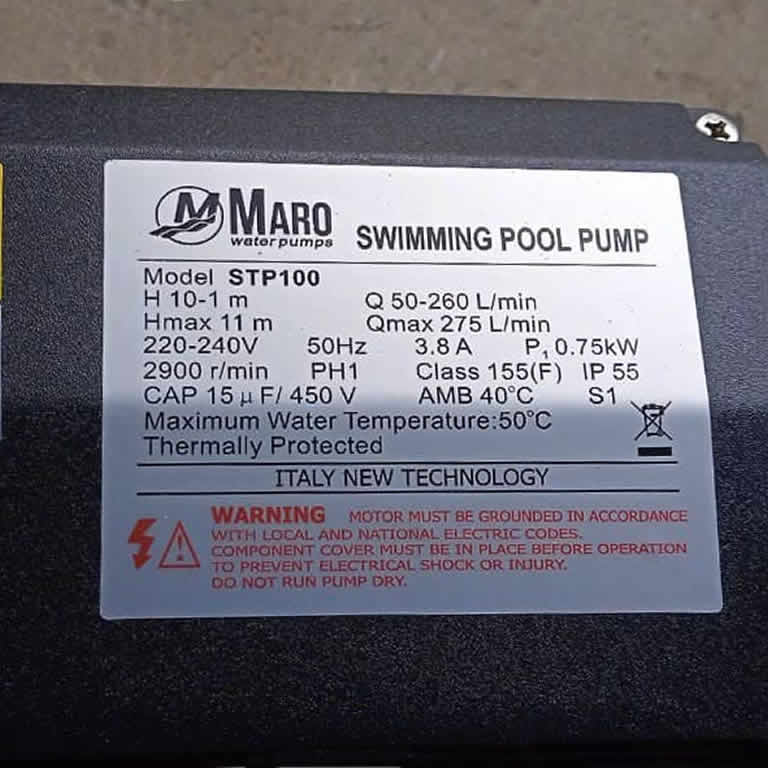 Thông số kỷ thuật Máy bơm hồ bơi Maro STP-100