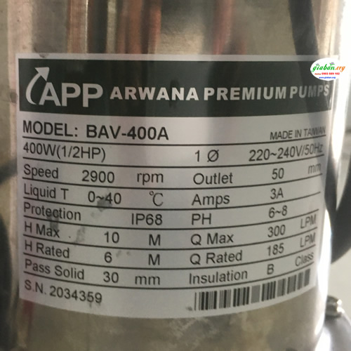 Máy bơm nước thải APP BAV-400A (400w) BAV 400A đòng bơm thả chìm có phao giá rẻ tại wenb Giá Bán