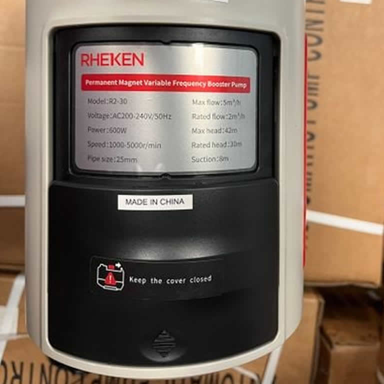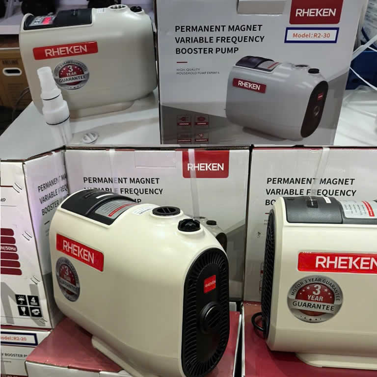 Máy bơm RHEKEN R2-30 600w bơm tăng áp lực nước nóng điện tử tự động, với động cơ nam châm vĩnh cửu.