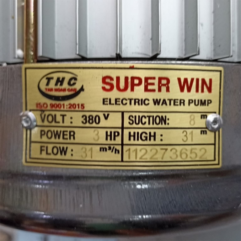 * Máy bơm nước Super Win 3HP 380v với chế độ bảo hành tốt lên đến 3 năm.