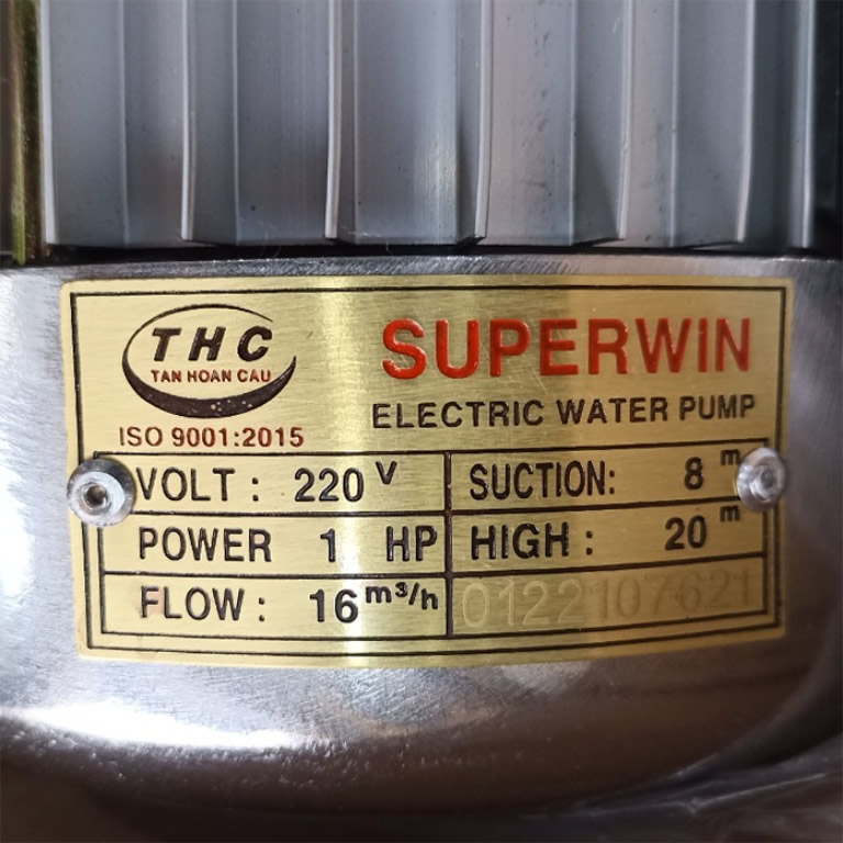 * Thông số kỹ thuật mô tơ bơm Super win 1 ngựa: