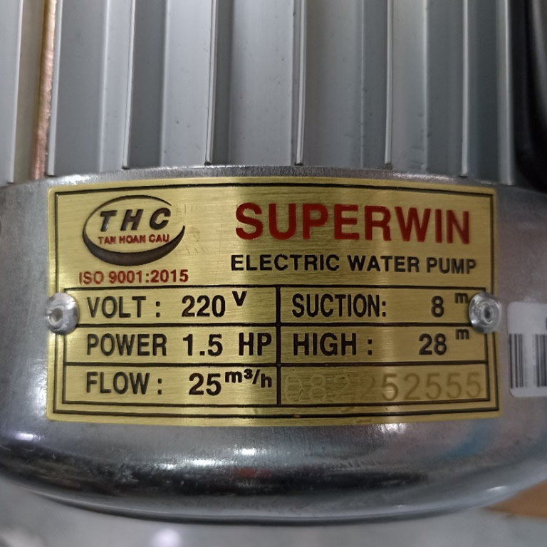 Thông số kỹ thuật mô tơ máy bơm nước Super Win 2 ngựa: