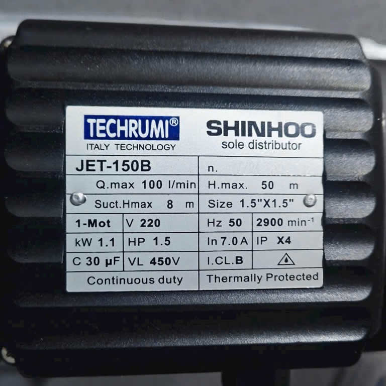 Thông số kỹ thuật máy bơm nước 1.5Hp Techrumi Jet-150B