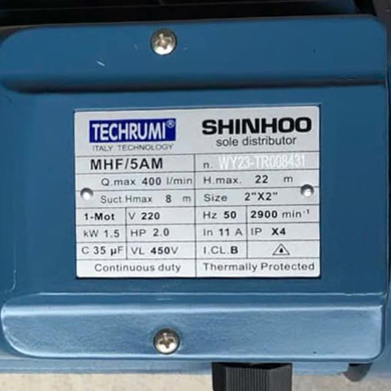Thông số kỷ thuật Máy bơm nước TECHRUMI MHF/5AM