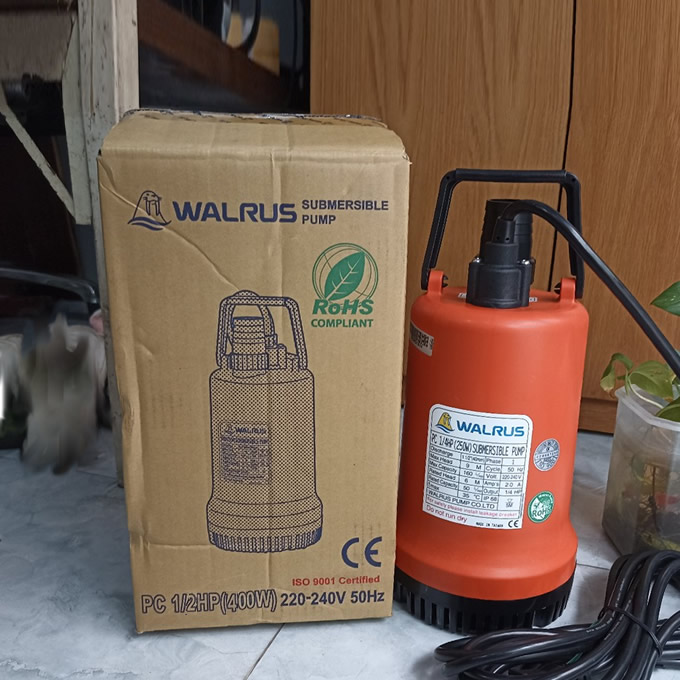 1 Máy bơm Walrus PC 400WF 400W, là dòng bơm chìm dùng nước sạch có phao