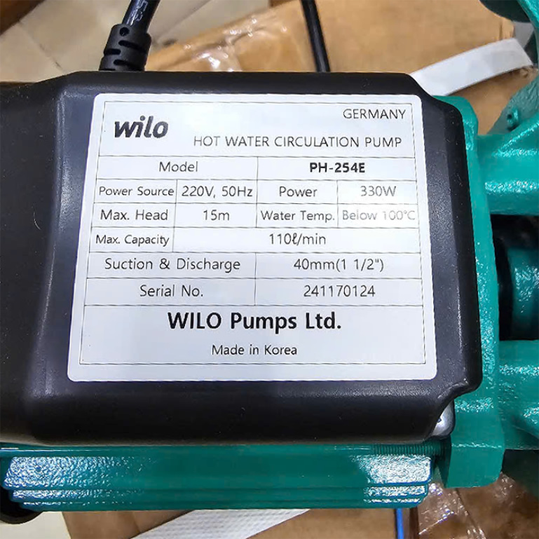 – Máy bơm WiLo PH 254E 330w có công suất mạnh mẽ, phù hợp cho tuần hoàn nước nóng.