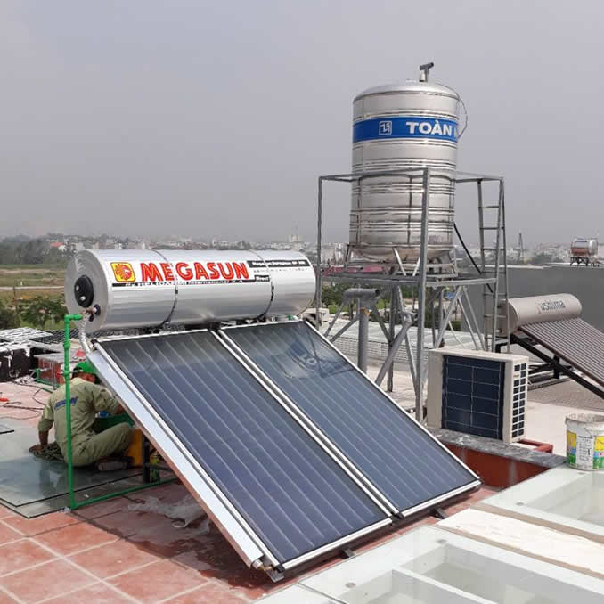 Máy nước nóng năng lượng mặt trời Megasun 300 lít tấm phẳng