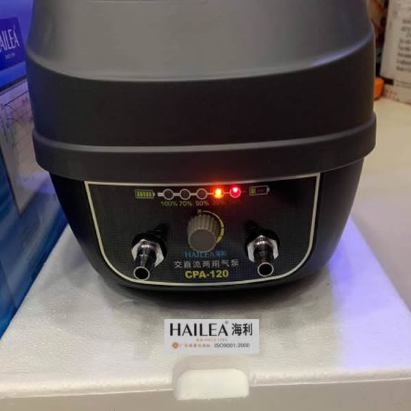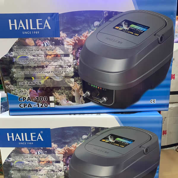 – Máy bơm oxy tích điện HAILEA CPA120 dòng sủi oxy cho hồ cá cảnh nhỏ và trung bình.