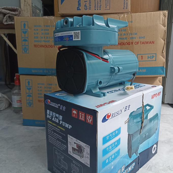 Máy thổi khí Resun MPQ-907 12V 130w là dòng bơm sủi oxy dùng điện bình ắc quy, điện 1 chiều.