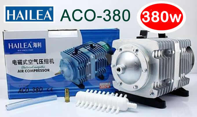 – Máy bơm oxy HAILEA ACO-380 (380w) dòng thổi khí cho hồ cá cảnh lớn, hồ cá Koi.
