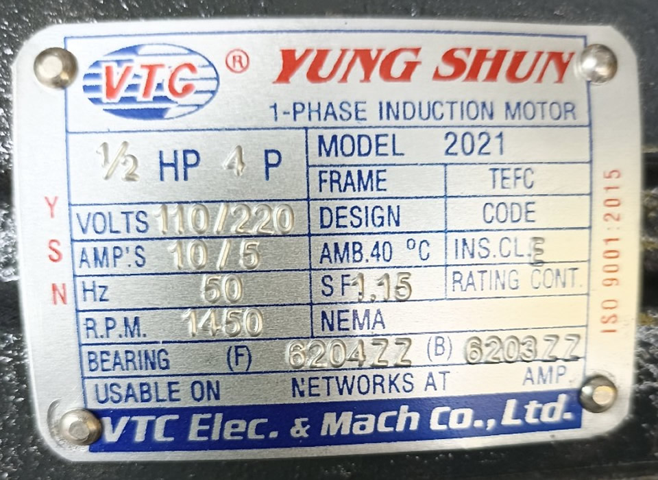 – Motor VTC 0.5Hp 220v tua 1.450 có Trọng lượng 18Kg