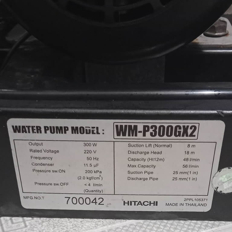 Máy Bơm Hitachi WM-P300X2 (300w), dòng bơm tăng áp lực nước tự động nhập khẩu từ Thái Lan.